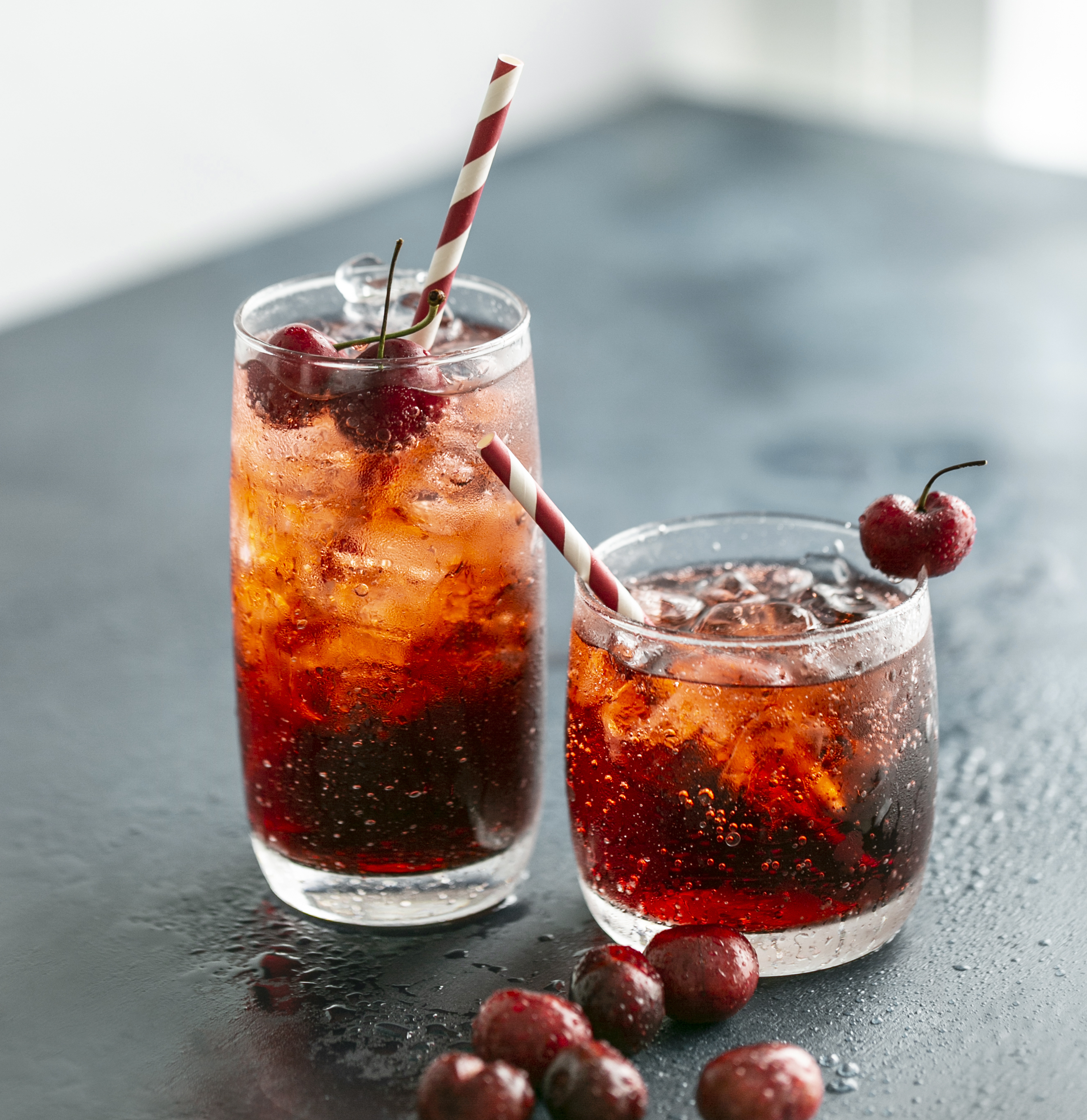Toss your cherries with the maple syrup and vanilla. Roast at 400 degrees for 15 minutes, until the cherries are just beginning to caramelize; this will bring out their sweetness. Steep smoky black tea leaves in boiling water for five minutes, then drain and set aside. Combine roasted cherries, tea, and the juice of half a lemon in a blender, then pass through a fine sieve. Dilute your delicious syrup with soda water. This batch of syrup makes enough for four servings.