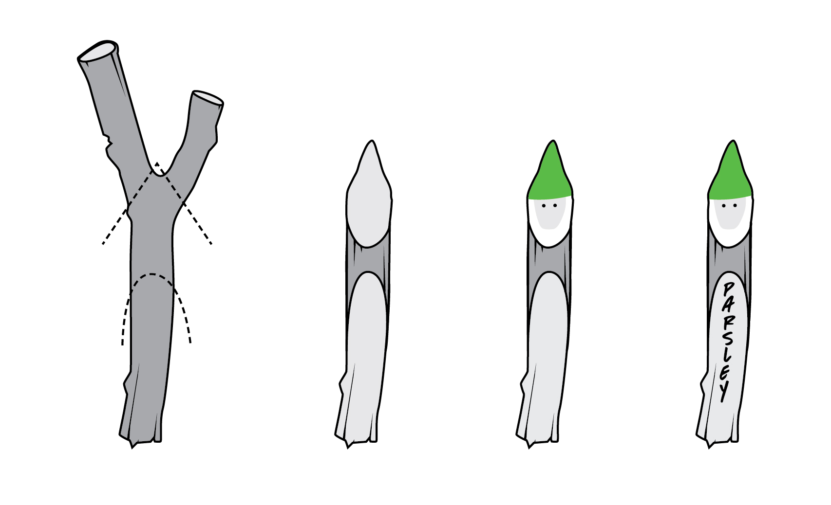 shaping the tip of your twig into a triangular point (and painting it red or