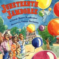 Juneteenth Jamboree, by Carole Boston WeatherfordJuneteenth, the African-American celebration of emancipation in Texas, is brought to life through a young girl named Cassie, who’s new to the Lone Star State. Texas doesn’t quite feel like home, until Cassie experiences this time-honored tradition with her family.