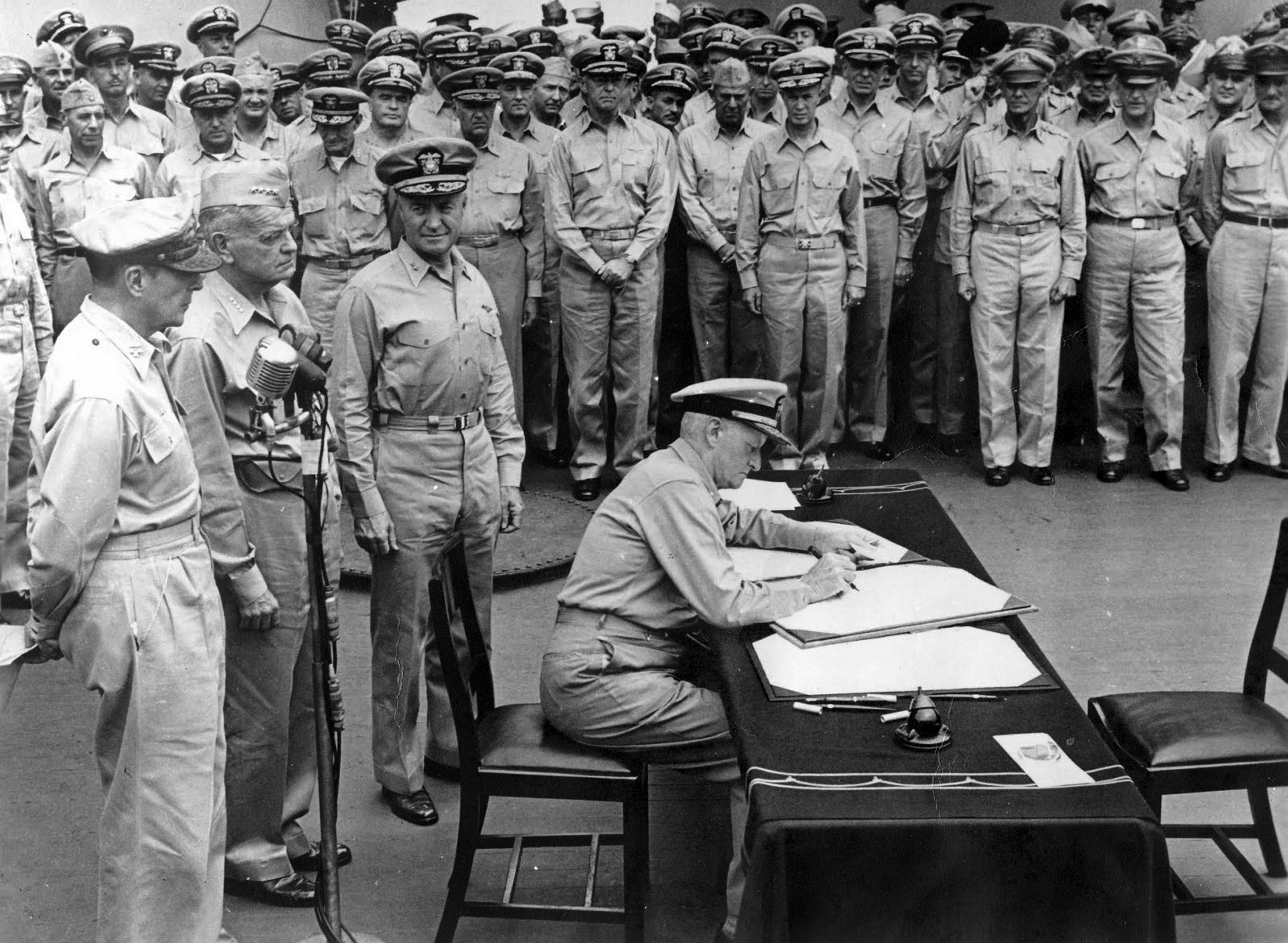 2, 1945, Nimitz signed his name to the treaty as the U.S. representative to the
