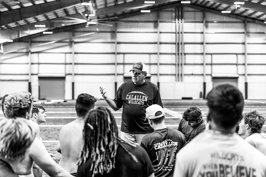 The football players of Calallen High School’s Wildcats quietly enter the film room in the training center. They’ve been asked to sit and wait for what the coach has prepared. The room is filled with trophies, too many to fit in a display case in one of the school hallways. Several decades of success crammed into a single room. These gilded accolades remind each player of the legacy that has been built by this football program and Coach Danaher, a legend in Texas football.