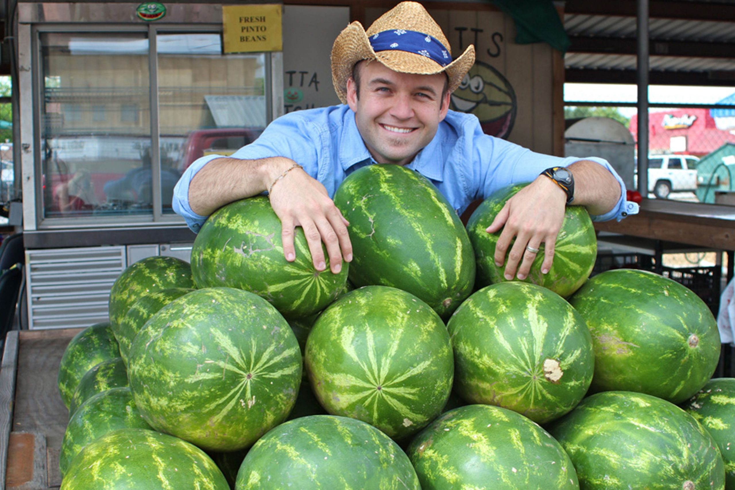 My favorite pump jack by a mile is the one with a redheaded kid that’s chomping up and down on a giant watermelon. Not only is it hilarious to watch, but it perfectly captures the spirit and culture of Luling. They’re absolutely crazy about watermelons here. Most folks think a watermelon is a watermelon, but in Luling, that couldn’t be further from the truth. They grow around 20 varieties; some a little sweeter, some with a thicker rind, some seedless, you name it. Swing by the farmer’s market in town, and you’ll find a bunch of experts on the subject happy to share their knowledge — and their melons.