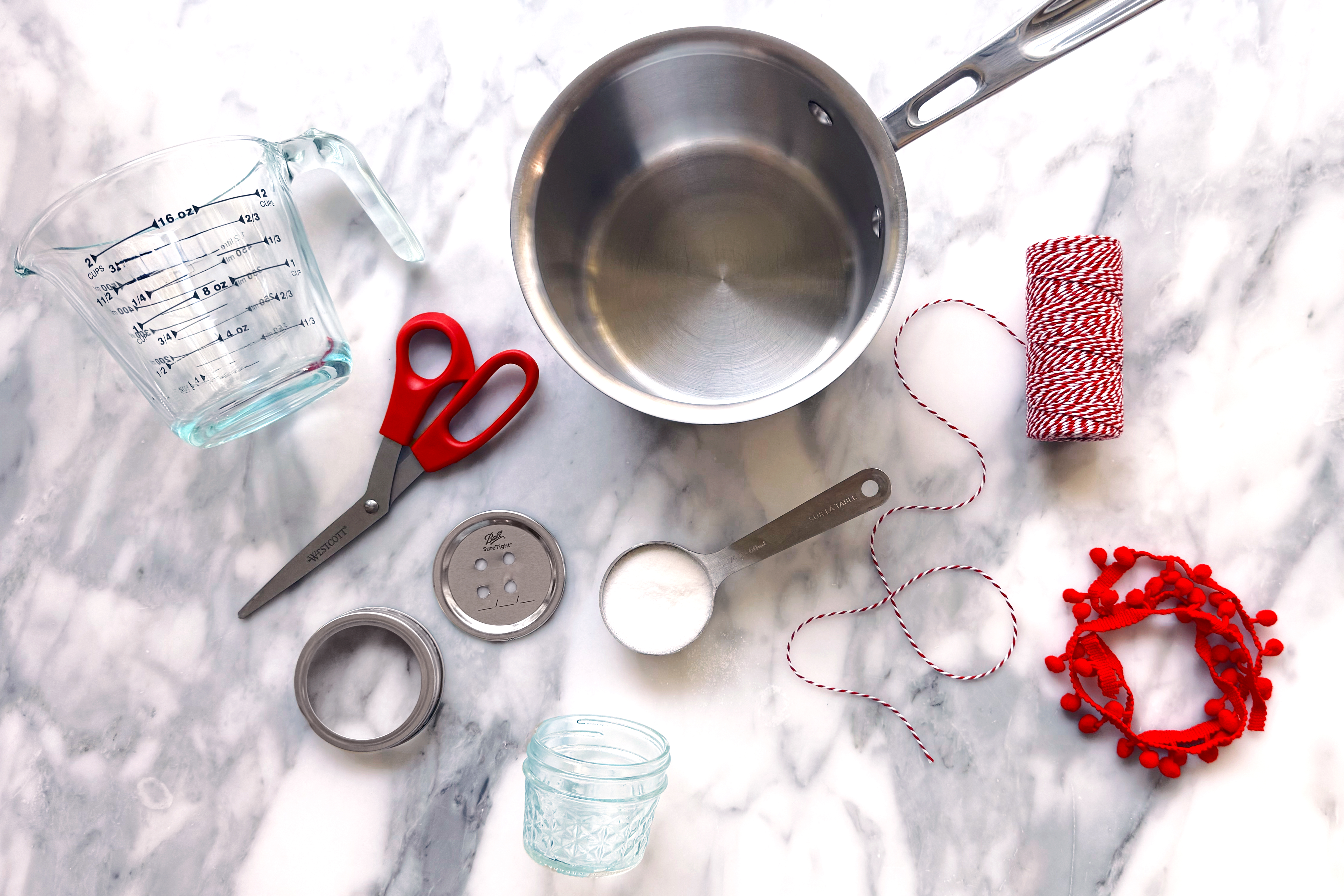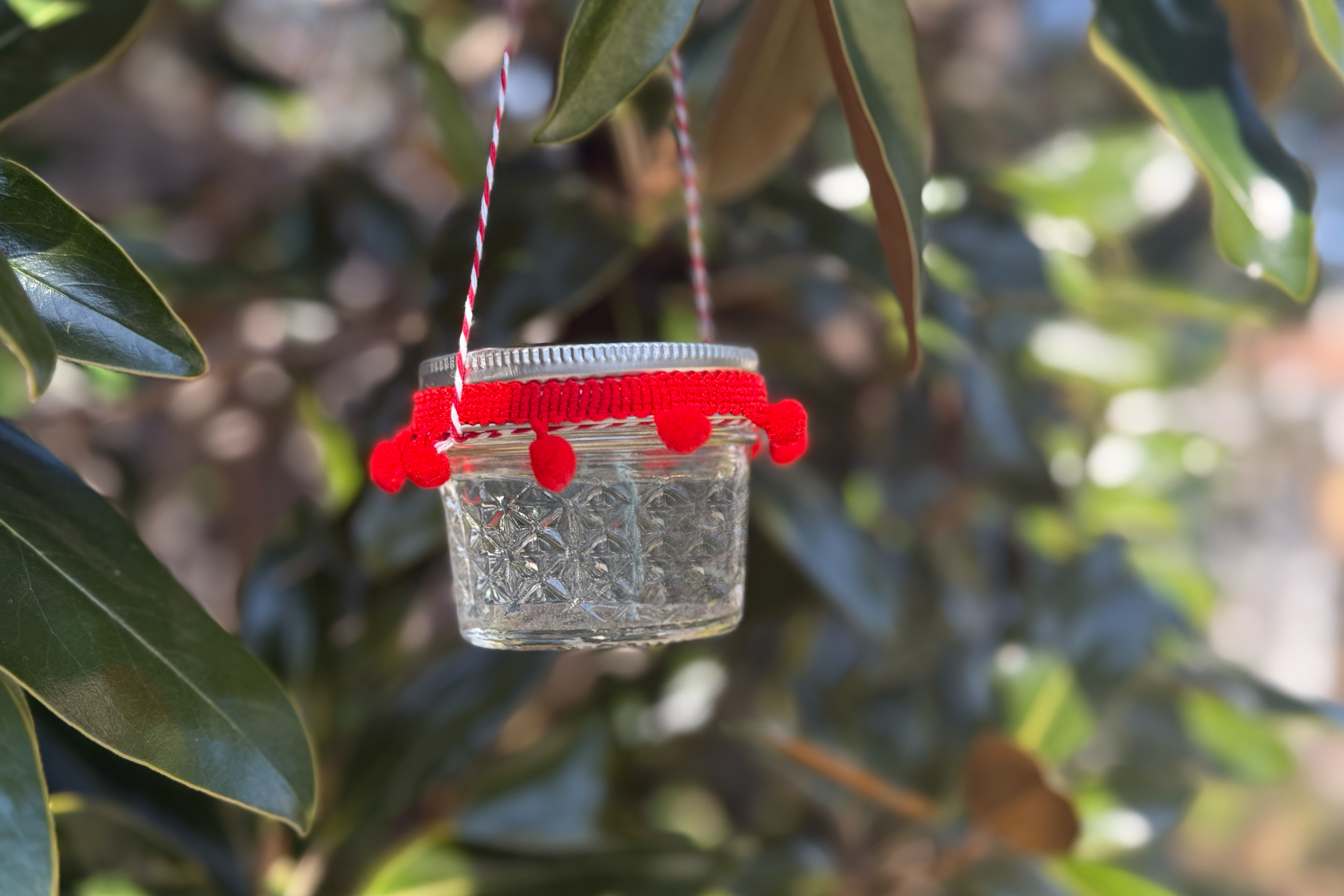 Wind the twine around the jar just under the lid and knot. Make a loop at the top for easy hanging.