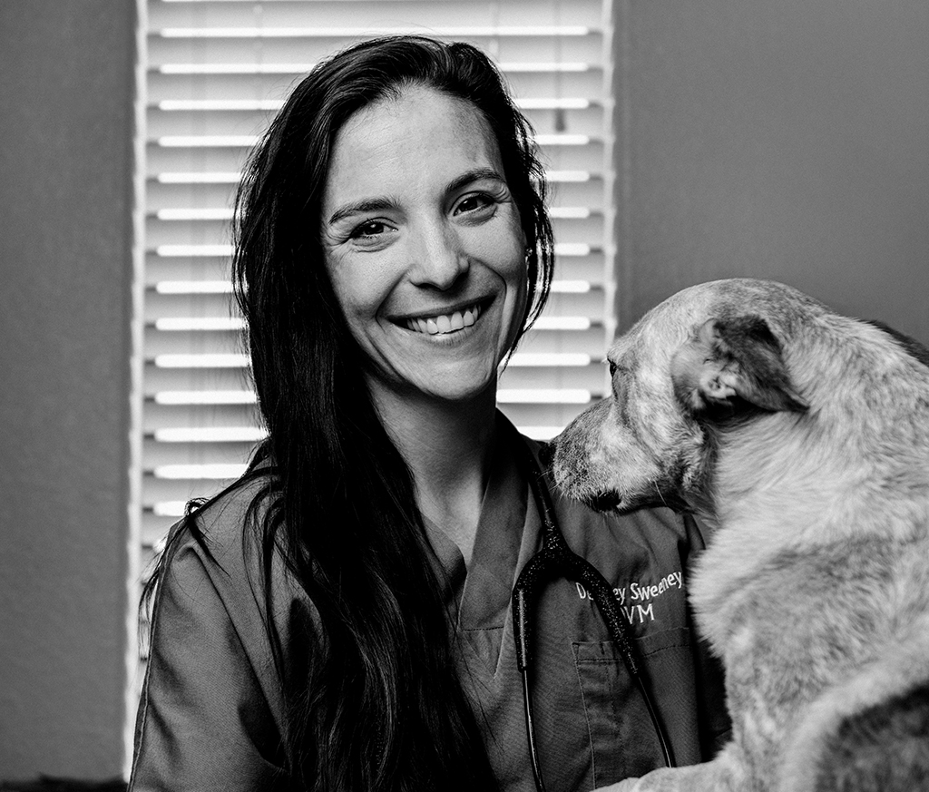 Sweeney has her fair share of pets, including six dogs, a cat, a horse, and a mini donkey who’s “attached at the hip” to her 2-year-old son, Houston. Add five dogs her husband, Patric, is training; he manages the dog boarding and training facility Wilkinson Veterinary Clinic is opening next door.