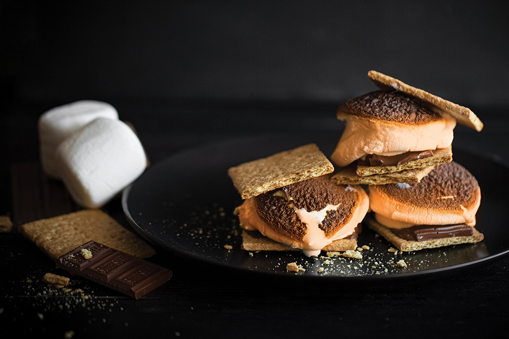 Halloween S’mores: For this simple variation on a well-loved classic, all you’ll need are graham crackers, marshmallows, chocolate bars, and some orange food coloring. Dye your marshmallows by soaking them for five minutes in a bowl of water with food coloring. You’ll need to put something heavy, like a plate, on top of your marshmallows to keep them from floating to the surface. Rotate the marshmallows a few times to ensure they are evenly colored.