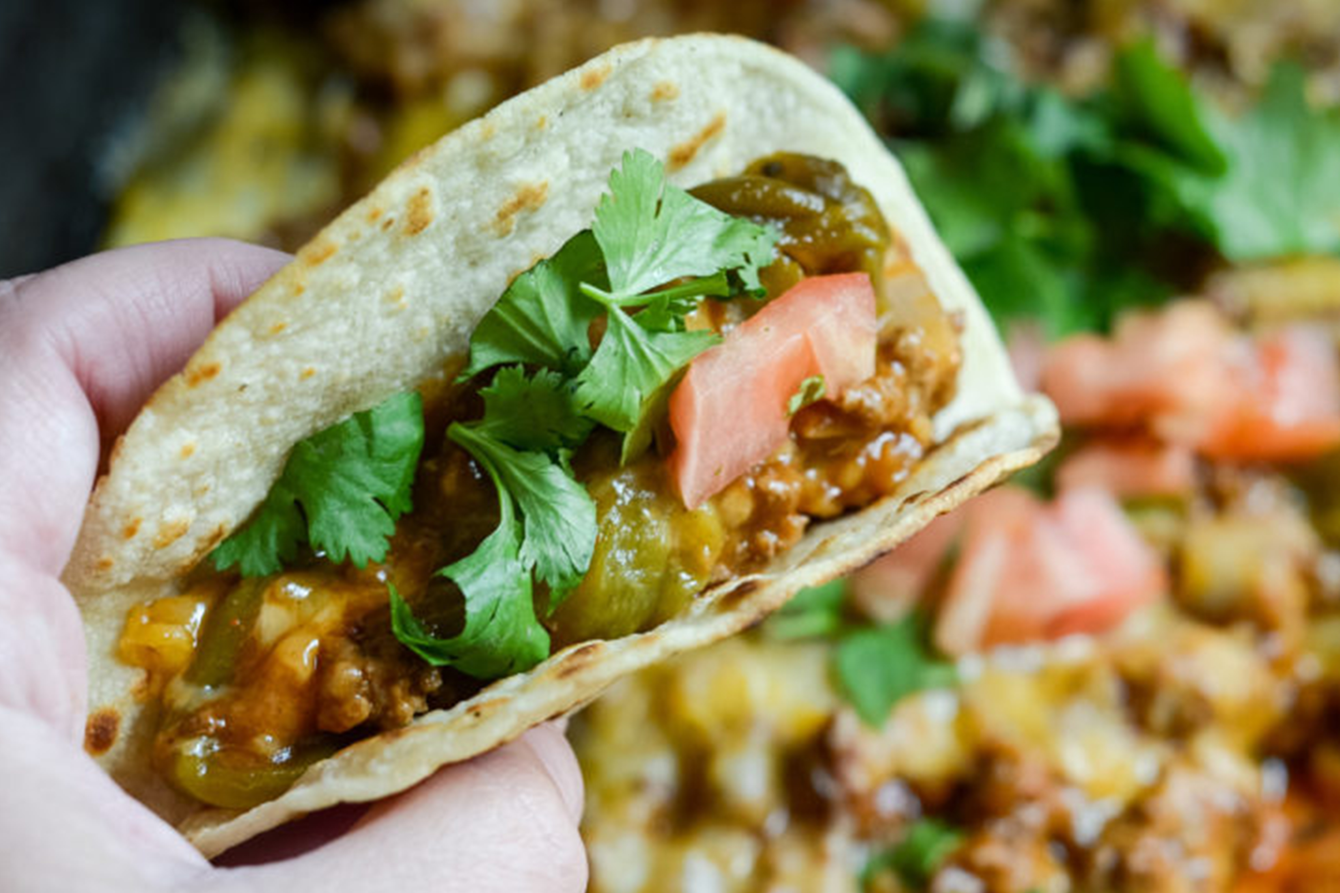 Give Taco Tuesday an upgrade. This recipe uses beef, onion, and taco seasoning, as usual, with the added sweet, earthy flavor of roasted Hatch chiles. The chiles’ aromatic quality makes the tacos irresistible, while their tender, chewy texture contrasts beautifully with juicy beef.