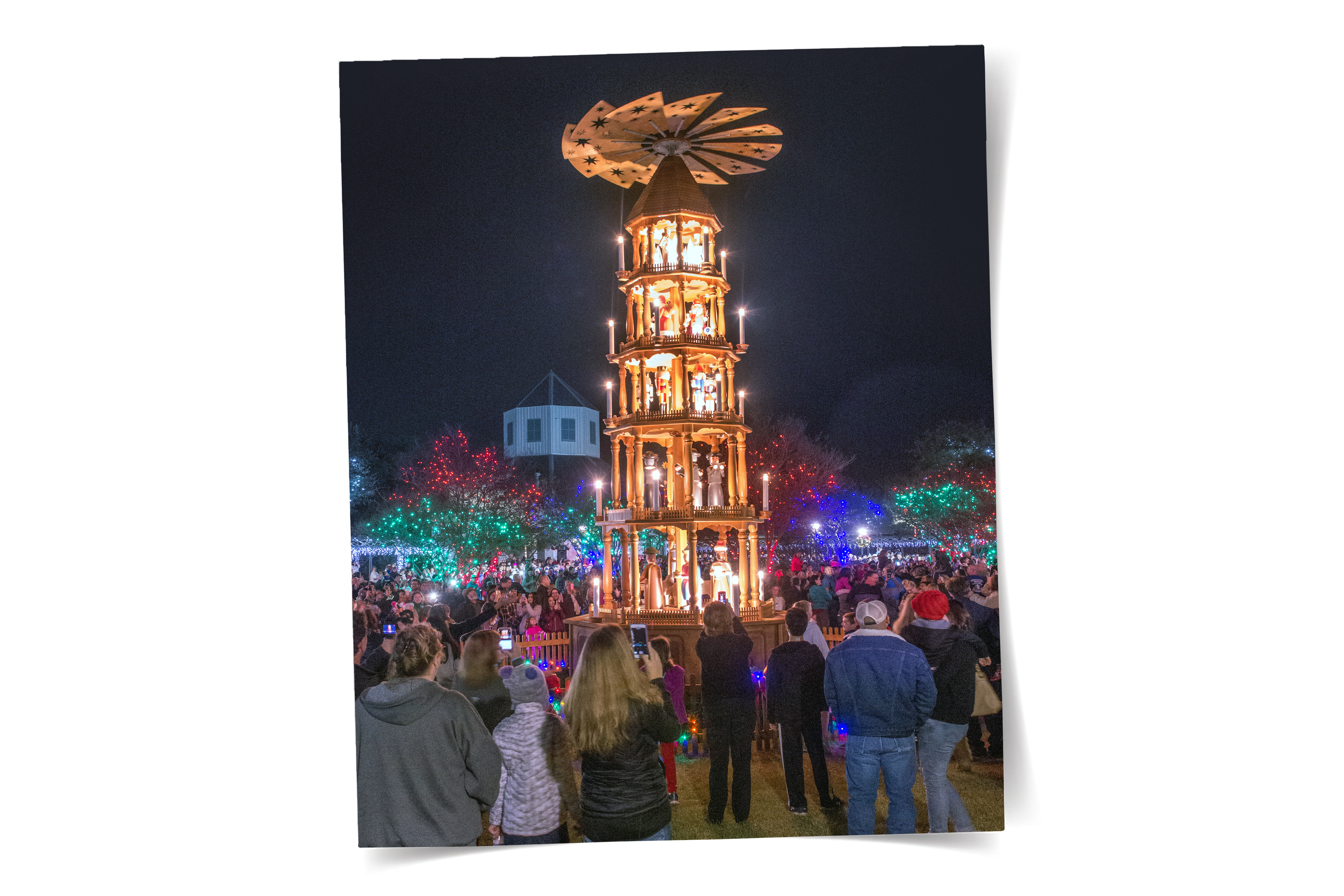 Celebrate Weihnachtszeit (Christmastime) with a visit to this Hill Country gem, where Old World German traditions coalesce with Texan hospitality. Shimmering lights and a main street bustling with approximately 150 locally owned shops and galleries are alluring draws. But the must-see attraction is the lighting of the 30-foot Christmas tree and 26-foot- tall Weihnachtspyramide, a carousel-like Christmas pyramid and traditional German decoration.