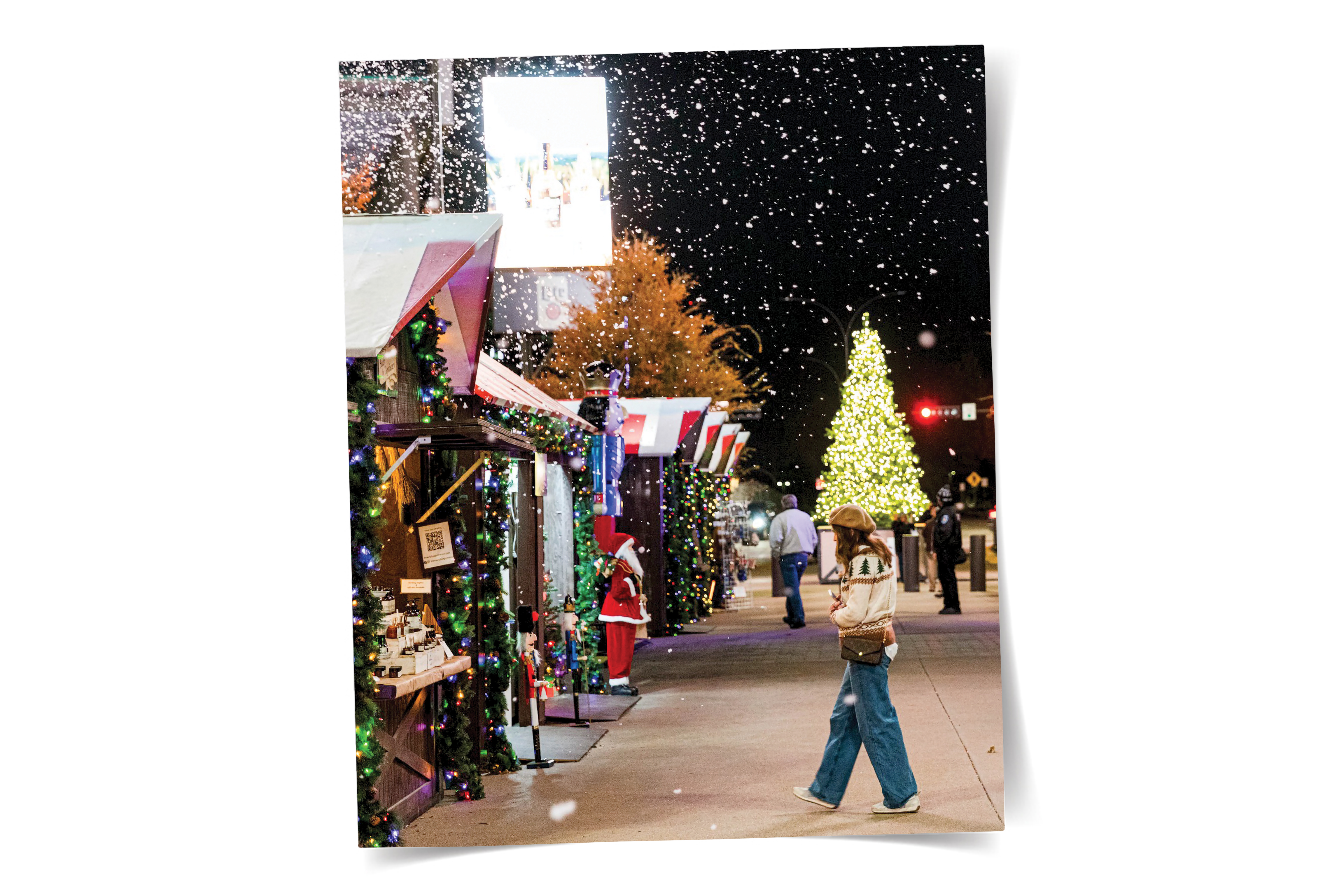 Cowboy culture reigns in this West Texas town, especially during the holidays. Head to the National Ranching Heritage Center at Texas Tech University for Candlelight at the Ranch (Dec. 13–14). Enjoy live music, sip hot cocoa, and nibble on kettle corn while experiencing life on the range. The university’s Carol of Lights (Dec. 15), a long-standing tradition since 1959, is also worth a visit. Texas Tech choirs perform holiday selections, and nearly 30,000 red, white, and orange lights illuminate the 13 buildings surrounding Memorial Circle. Round out your trip west by exploring some of the town’s best boutiques and stopping for a seasonal delight at local favorite Sugar Browns Coffee Co.