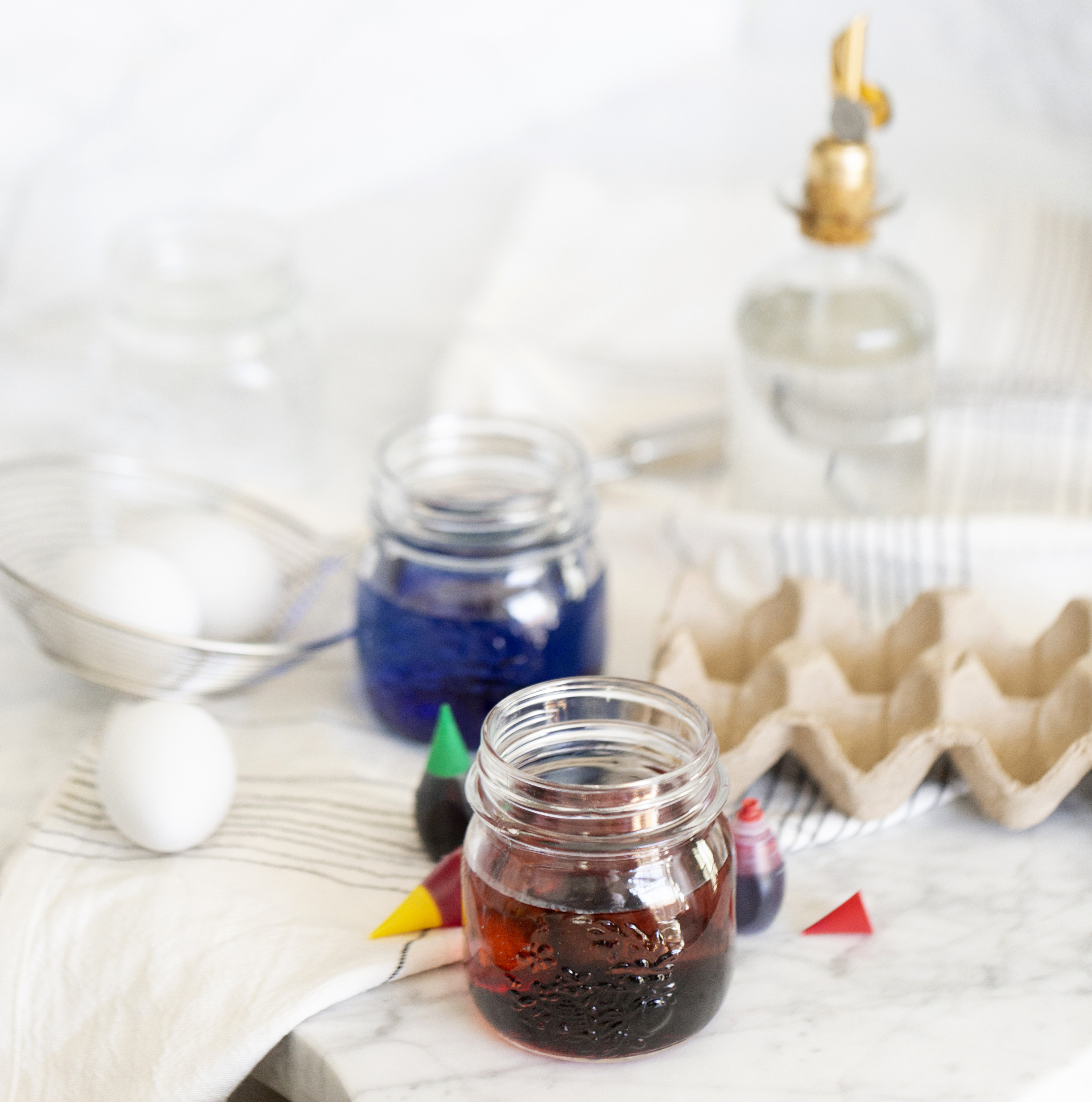 Containers large enough to immerse an egg. (Each color should have its own container.)
