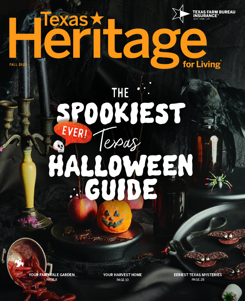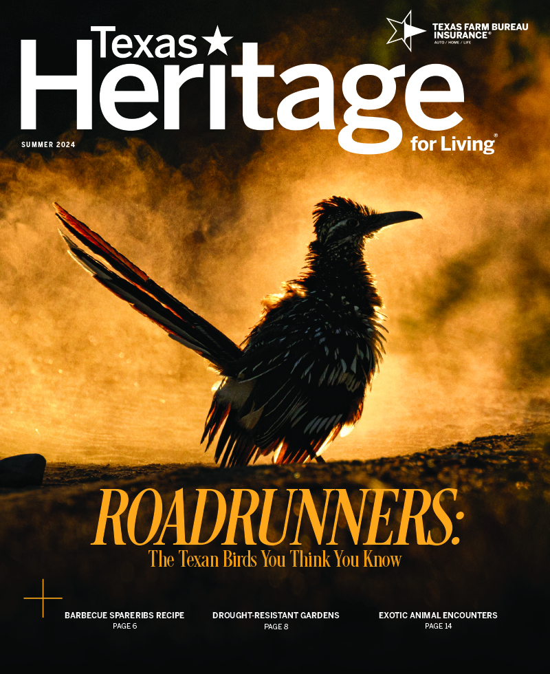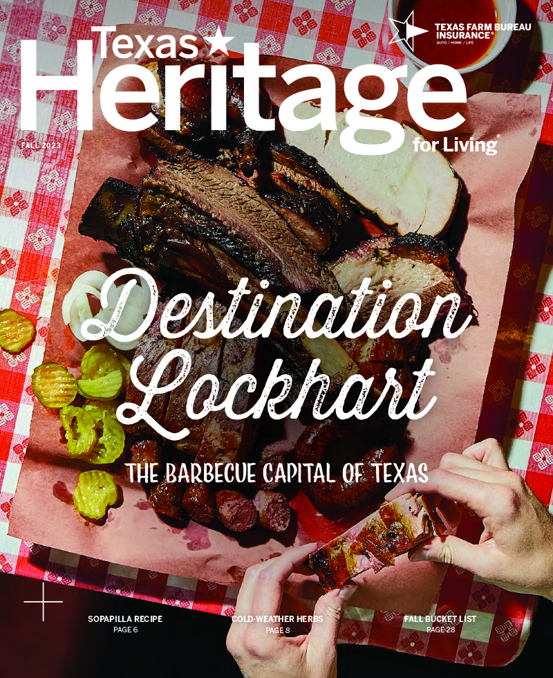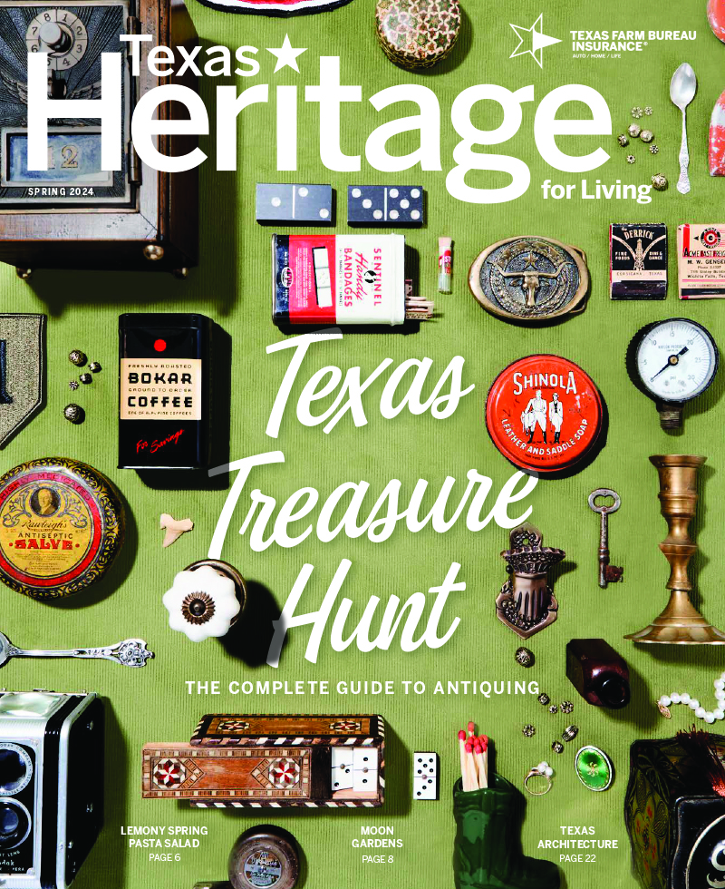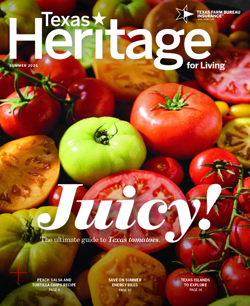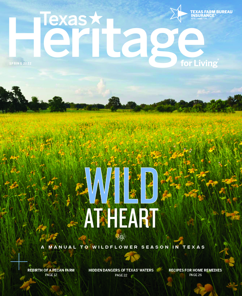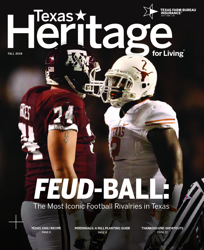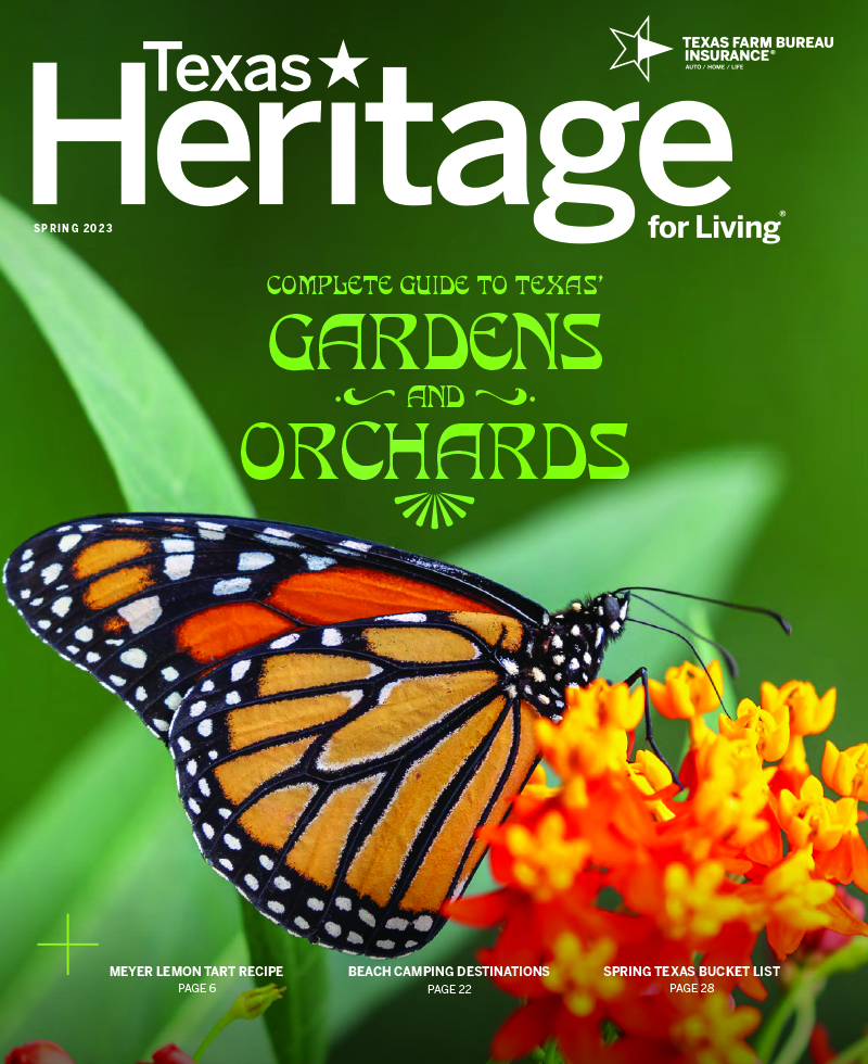 Magazine A celebration of our great state, Texas Heritage for Living magazine is a benefit for Texas Farm Bureau Insurance members. Home Magazine LATEST ISSUE Spring 2026 Read This Issue Texas Nature Bucket List A Look Inside Arlington’s National Medal of Honor Museum The FIFA World Cup Is Coming to Texas Texas Crawfish Boil Guide Recipe: Banana Pudding Texas Garden Fertilizer Guide Why Termite Prevention Is Essential for Texas Homeowners How Auto Insurance Impacts Selling Your Car Magazine Archive 2026 IssuesSpring 20262025 IssuesSpring 2025Summer 2025Fall 2025Winter 20252024 IssuesSpring 2024Summer 2024Fall 2024Winter 20242023 IssuesSpring 2023Summer 2023Fall 2023Winter 20232022 IssuesSpring 2022Summer 2022Fall 2022Winter 20222021 IssuesSpring 2021Summer 2021Fall 2021Winter 20212020 IssuesSpring 2020Summer 2020Fall 2020Winter 20202019 IssuesSpring 2019Summer 2019Fall 2019Winter 20192018 IssuesSpring 2018Summer 2018Fall 2018Winter 20182017 IssuesSpring 2017Summer 2017Fall 2017Winter 20172016 IssuesSpring 2016Summer 2016Fall 2016Winter 2016
