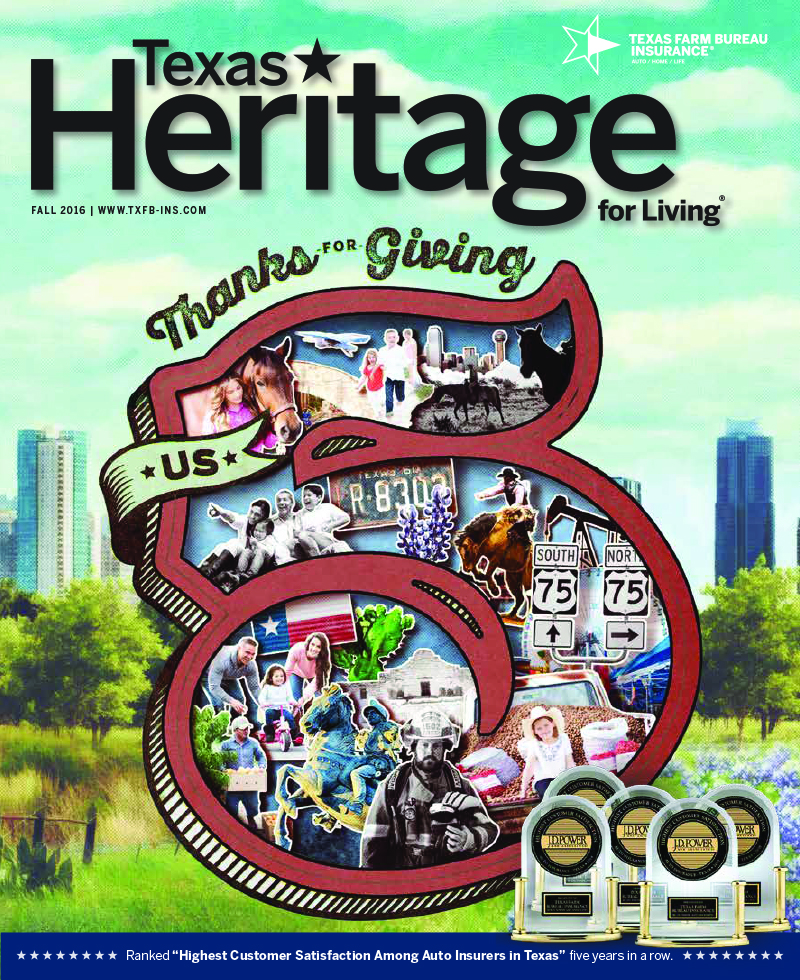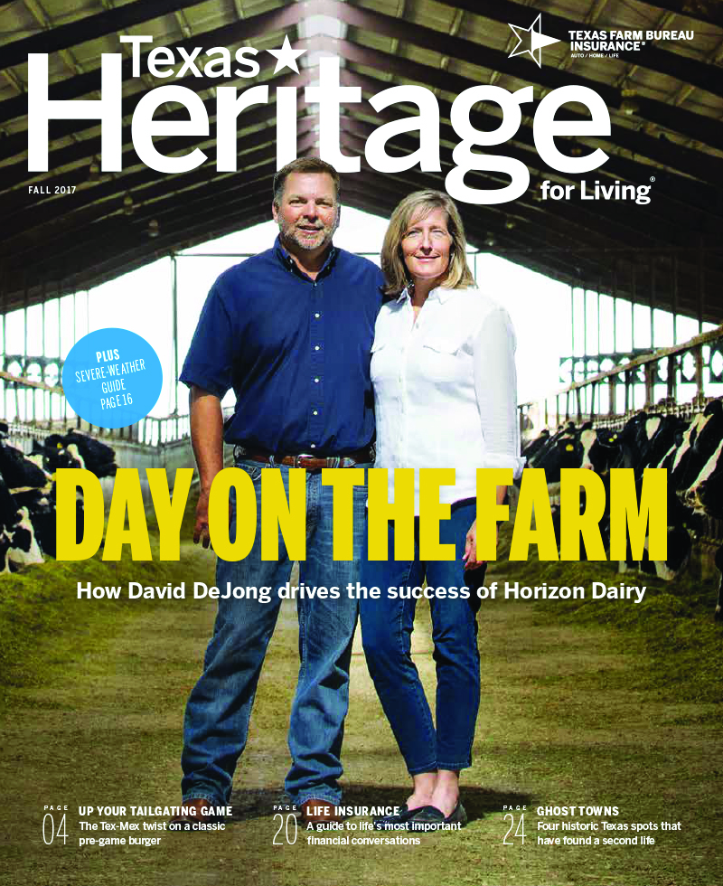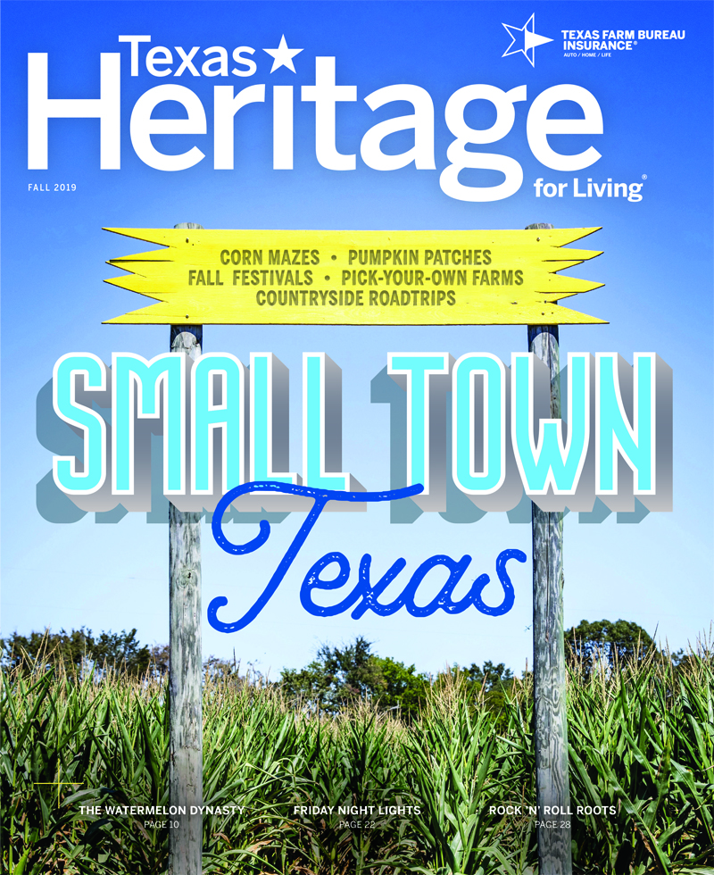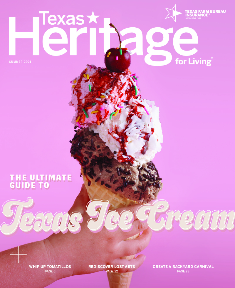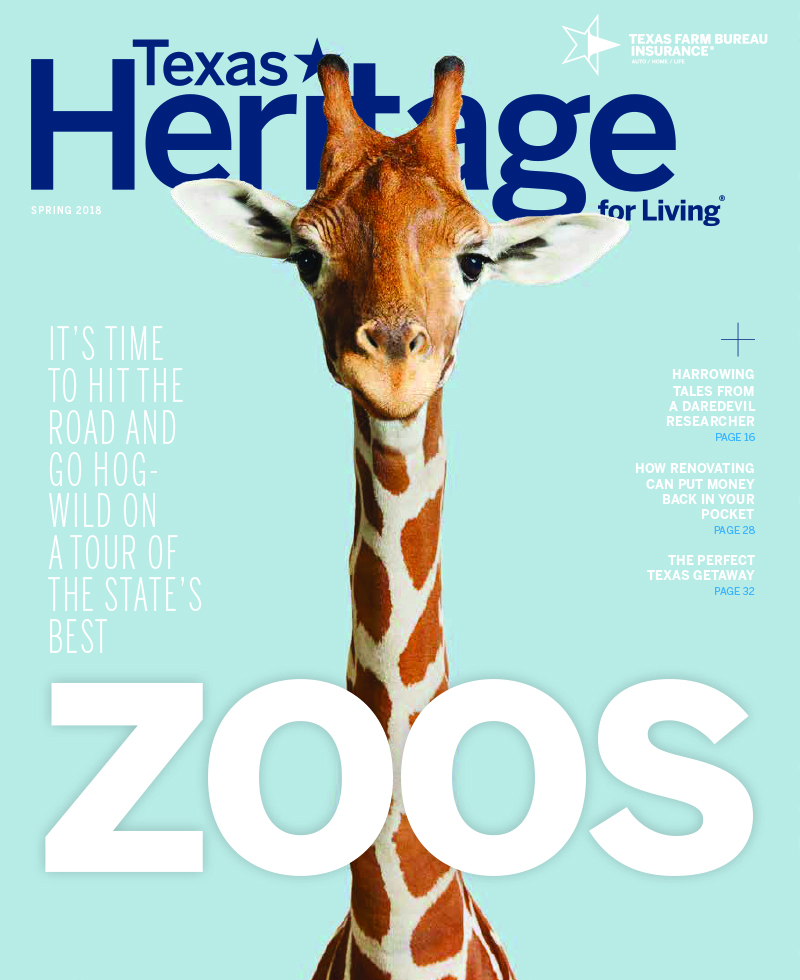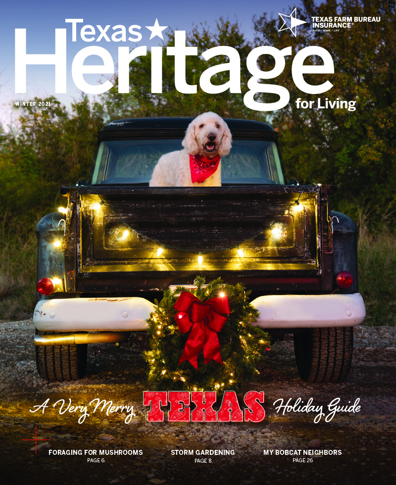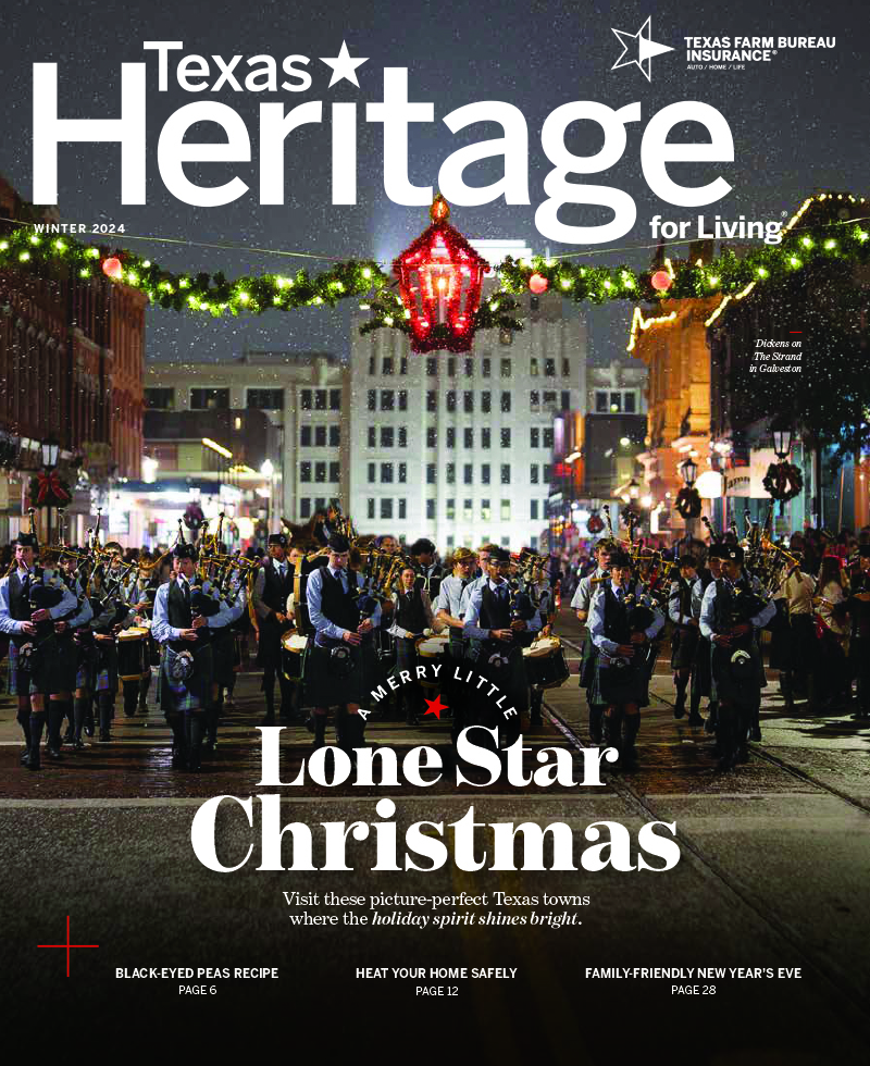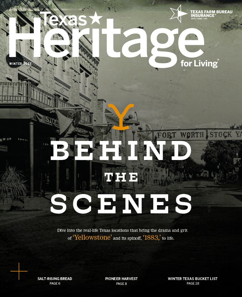 Magazine A celebration of our great state, Texas Heritage for Living magazine is a benefit for Texas Farm Bureau Insurance members. Home Magazine LATEST ISSUE Spring 2026 Read This Issue Texas Nature Bucket List A Look Inside Arlington’s National Medal of Honor Museum The FIFA World Cup Is Coming to Texas Texas Crawfish Boil Guide Recipe: Banana Pudding Texas Garden Fertilizer Guide Why Termite Prevention Is Essential for Texas Homeowners How Auto Insurance Impacts Selling Your Car Magazine Archive 2026 IssuesSpring 20262025 IssuesSpring 2025Summer 2025Fall 2025Winter 20252024 IssuesSpring 2024Summer 2024Fall 2024Winter 20242023 IssuesSpring 2023Summer 2023Fall 2023Winter 20232022 IssuesSpring 2022Summer 2022Fall 2022Winter 20222021 IssuesSpring 2021Summer 2021Fall 2021Winter 20212020 IssuesSpring 2020Summer 2020Fall 2020Winter 20202019 IssuesSpring 2019Summer 2019Fall 2019Winter 20192018 IssuesSpring 2018Summer 2018Fall 2018Winter 20182017 IssuesSpring 2017Summer 2017Fall 2017Winter 20172016 IssuesSpring 2016Summer 2016Fall 2016Winter 2016