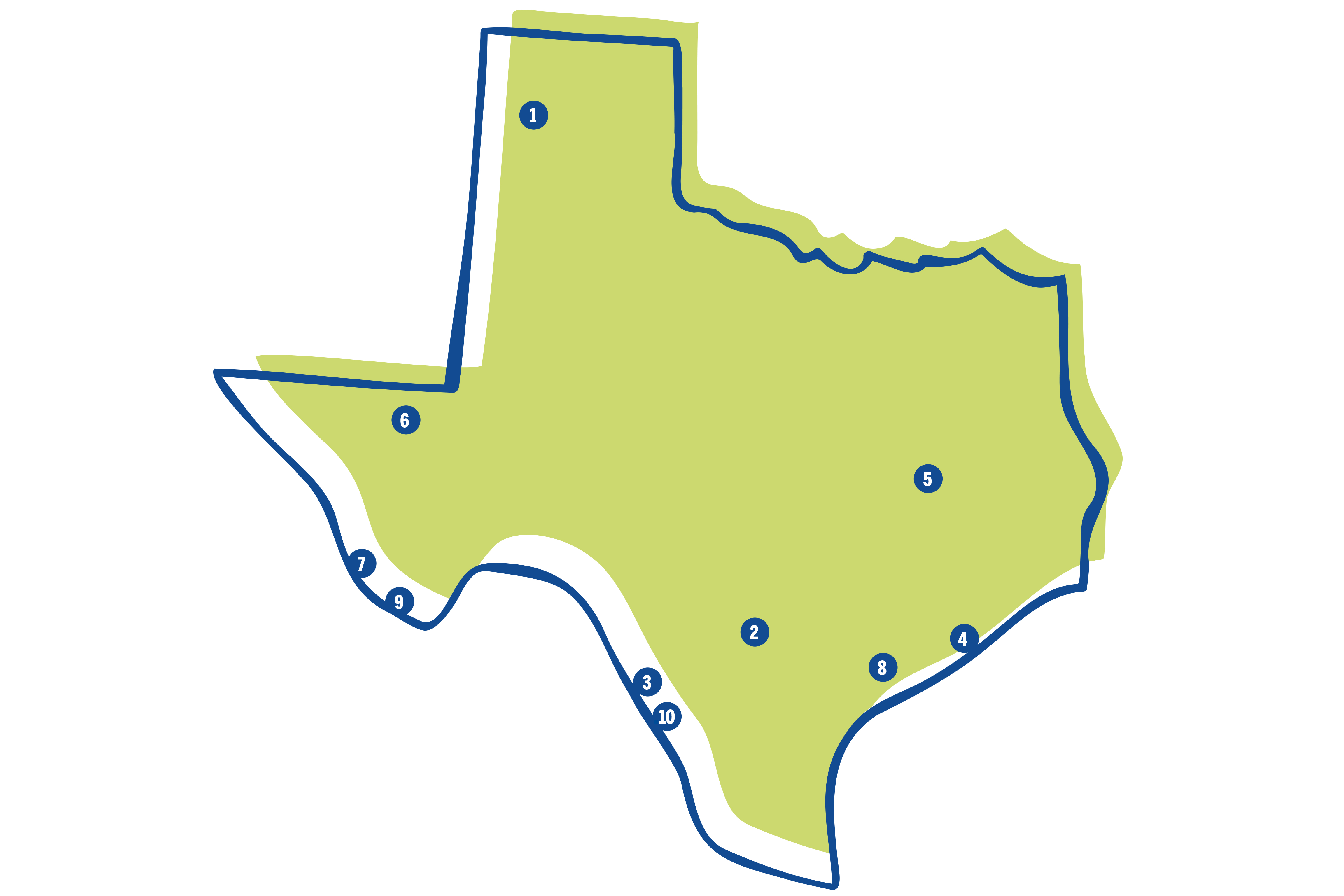 1. Amarillo: This Panhandle city’s name, the Spanish word for “yellow,” was inspired by the color of the area’s subsoil.