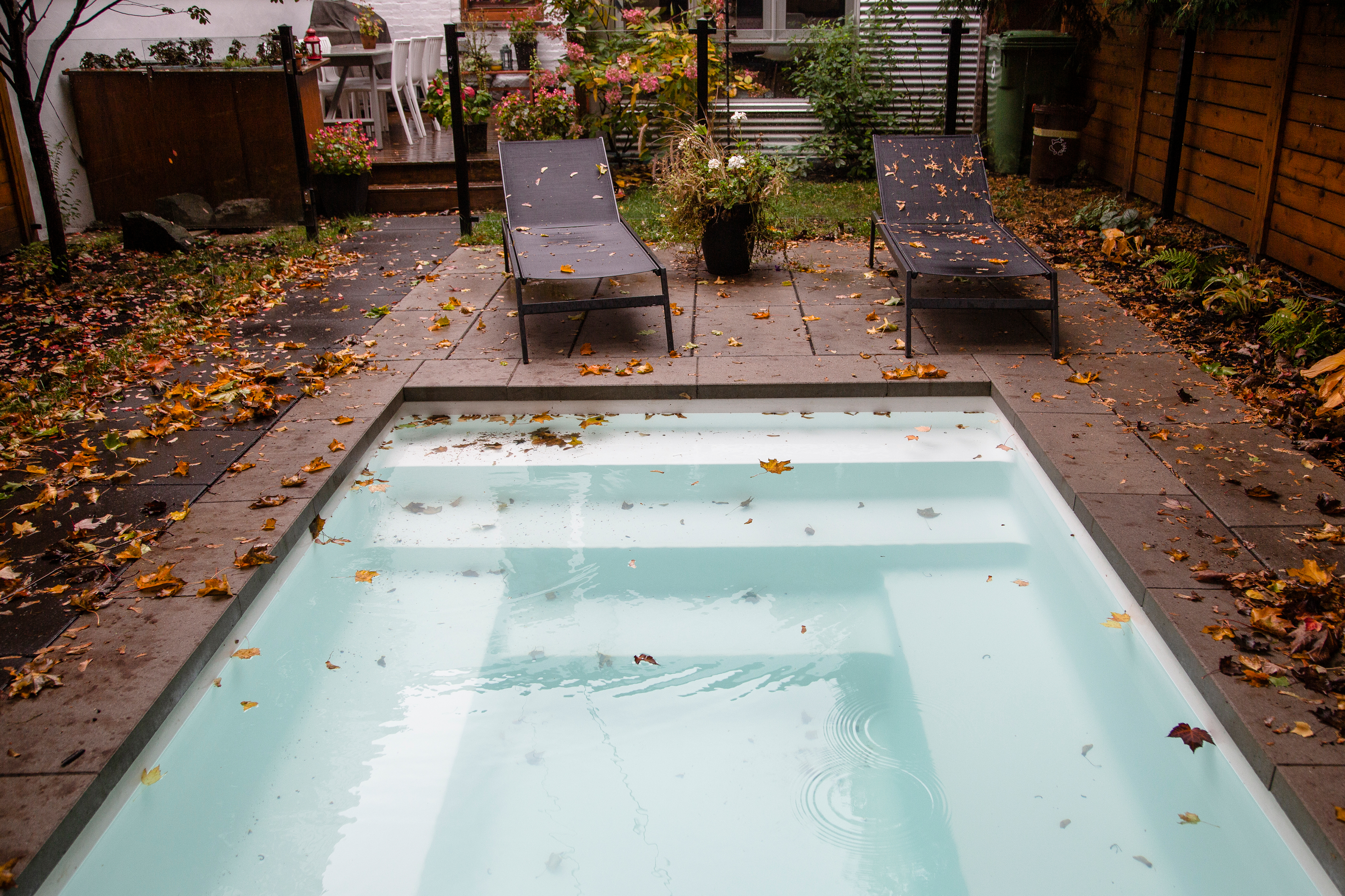 Deep clean. Remove toys, accessories, and debris. Scrub the base and sides with a pool brush. Adjust the phosphate levels and add a winterizing kit with stain and scale inhibitors.