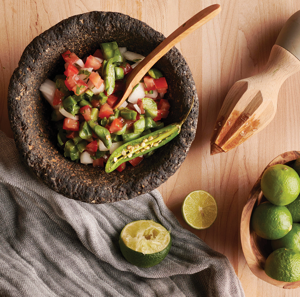 To make her refreshing nopal pico de gallo, toss together your ingredients and season with salt to taste. Fold into scrambled eggs, serve with warm corn tortillas, and top with queso fresco to make her nopalitos con huevos.