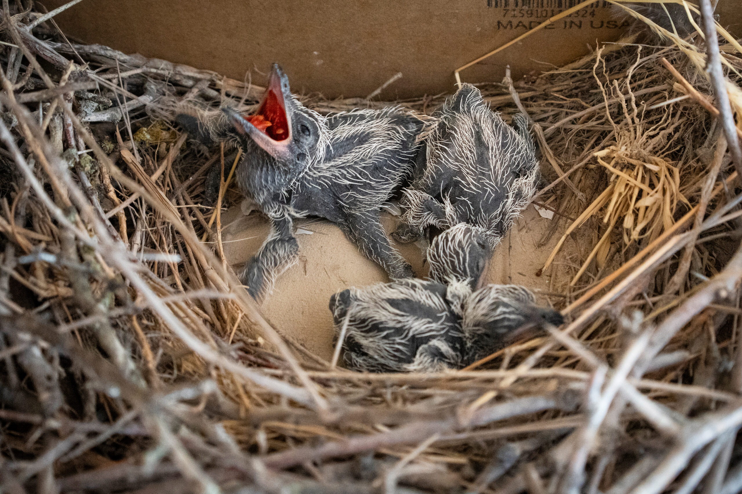The couple builds a small, cup-shaped nest in brush, low trees, or even cacti. After laying a clutch of between two and six eggs, both Mom and Dad take turns sitting on them for three weeks when the babies hatch. After about four weeks, the brood will be fully-fledged roadrunners and ready to begin hunting independently.