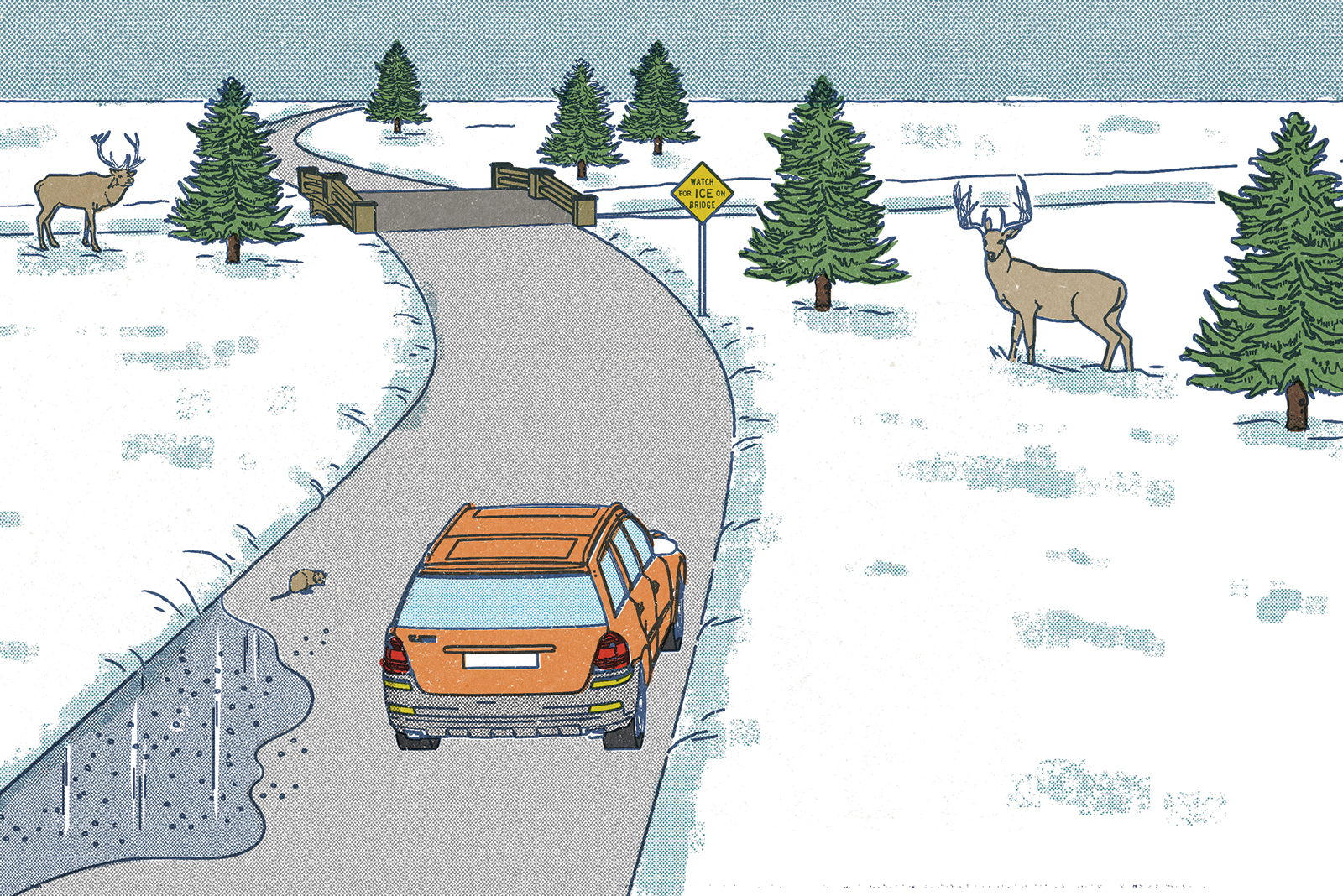 • If there are no other vehicles around you, slow down, come to a complete stop, and wait. Hopefully, whatever is furry will scurry.
