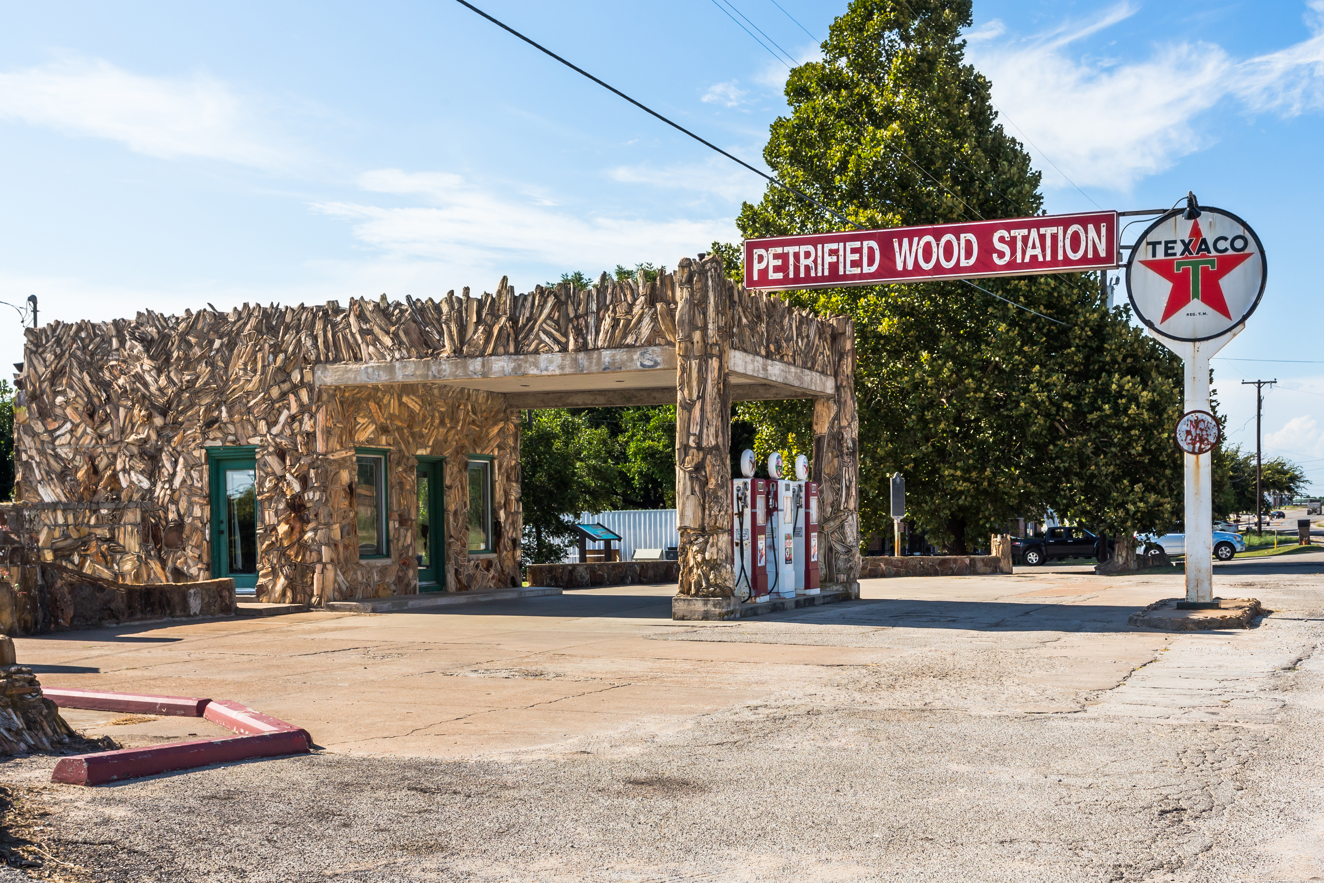 E.F. Boydston opened a gas station off U.S. Highway 287 in 1927 in Decatur. Eight years later, he transformed it into a work of art by covering the station, its café, and adjoining motor court with chunks of petrified wood. The café and gas station closed their doors decades ago, but one of his grandchildren restored the building to its 1945 glory. It’s worth a trip to see.