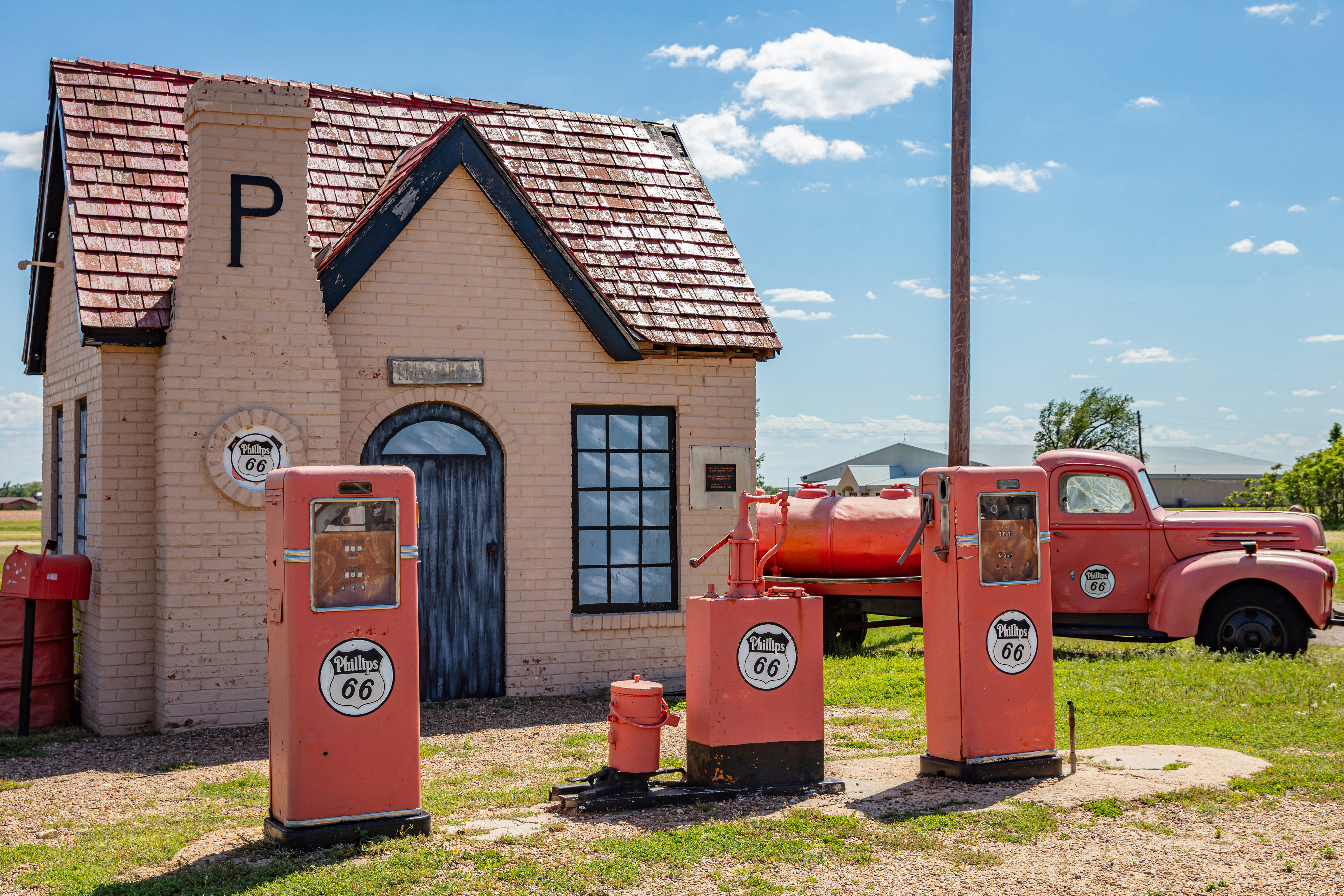 Just down the road from Devil’s Rope Barbed Wire Museum is the first Phillips Petroleum station in Texas, whose exterior has been restored to its original condition by a U.S. Route 66 historic preservation group. The interior is off-limits, but the two vintage gas pumps and tow truck outside are all you need for an A-plus Americana road trip selfie.
