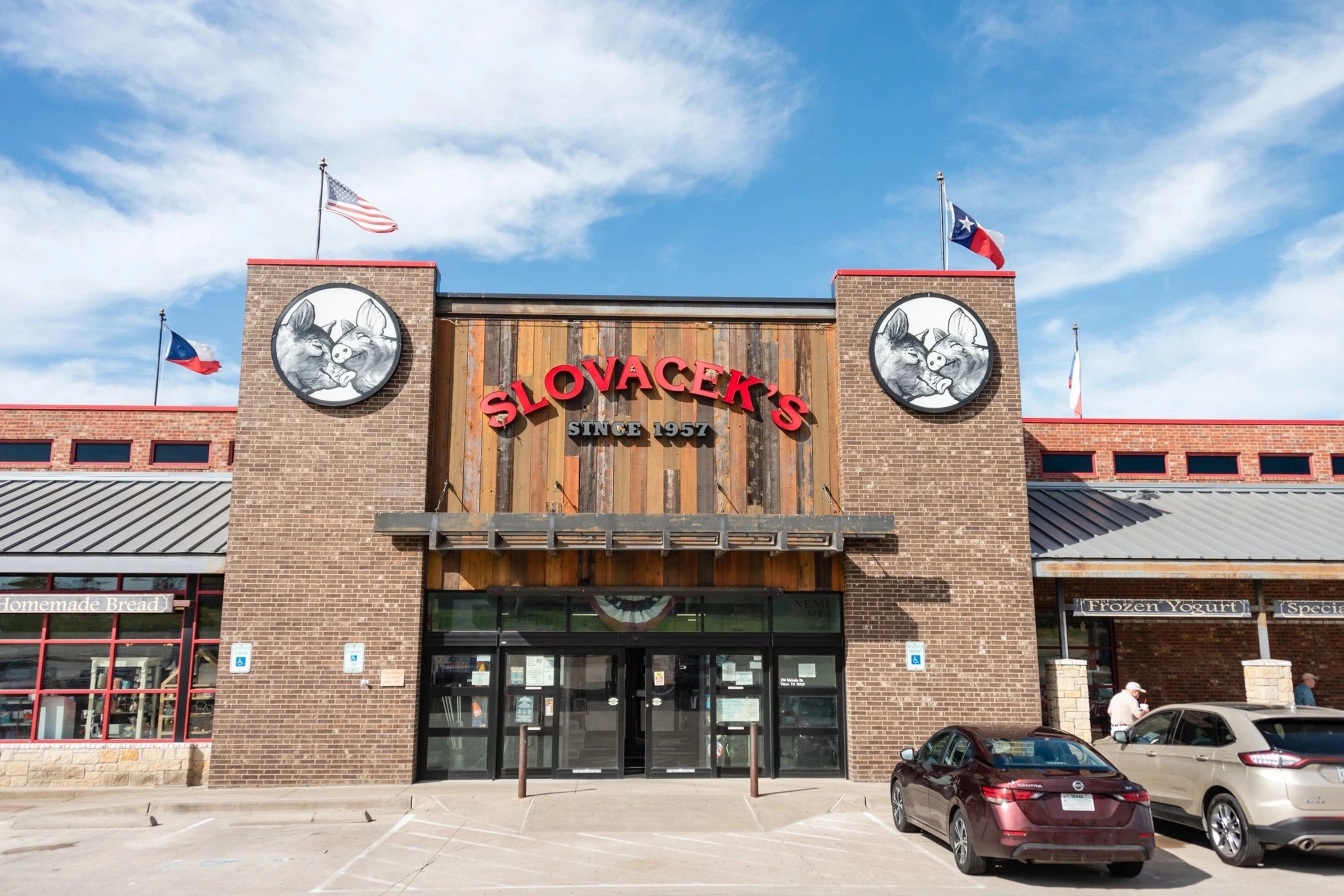 Just across the highway from Czech Stop is its dog-friendly rival, Slovacek’s. Its spacious footprint enables a sizable dog park and a large breadth of fare from its restaurant, Kissing Pig Café. Recommended: juicy chopped barbecue plates, pulled pork sandwiches, and sausage wraps.