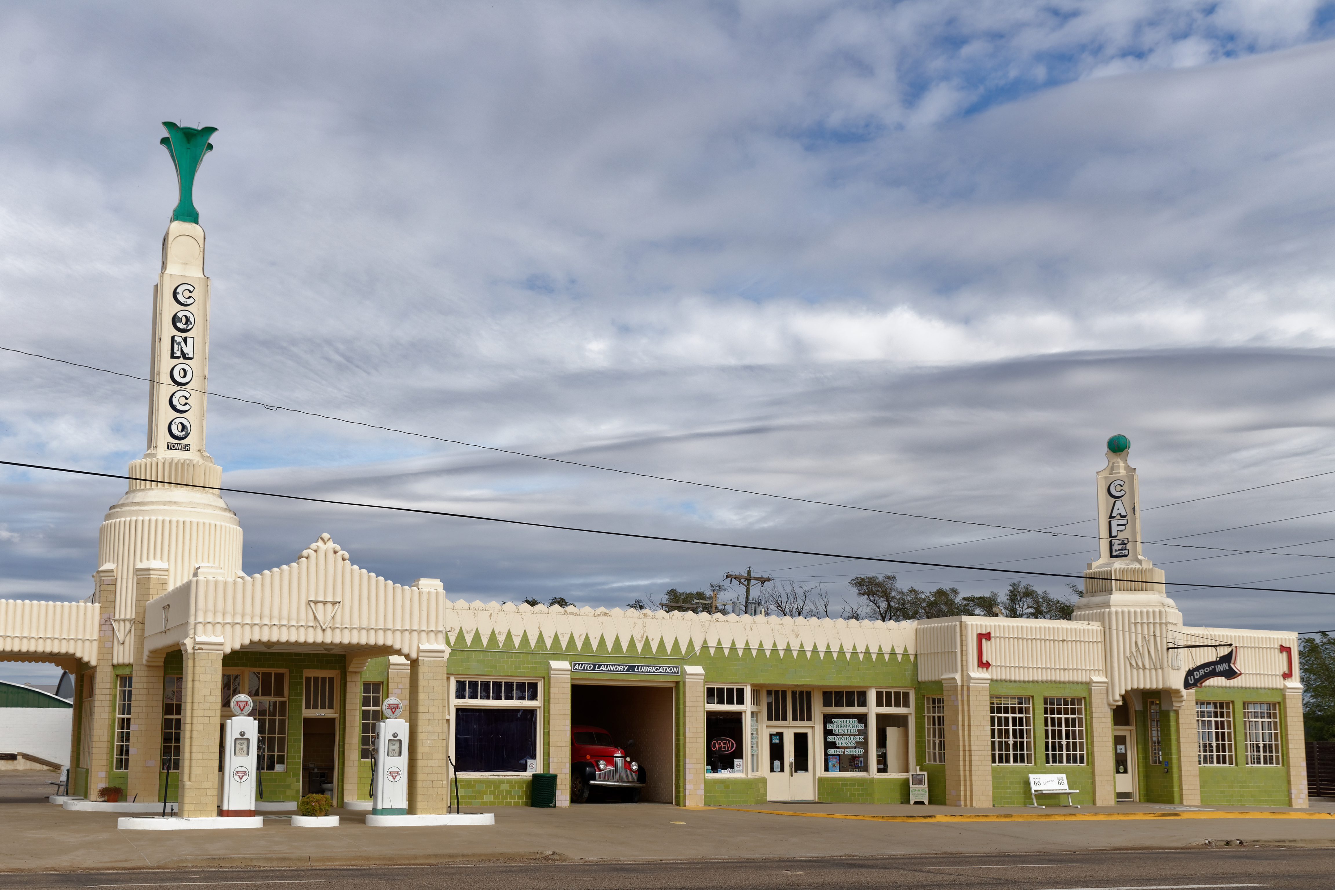 This art deco architectural gem, built in 1936, was the first commercial business along U.S. Route 66 in Shamrock. It’s distinctive neon-lit, two-tower design was reportedly the inspiration for Ramone’s House of Body Art in the movie “Cars.” While the gas pumps no longer function, there are chargers for electric cars. While you wait, check out the visitor’s center and order a burrito and a sundae from the café.