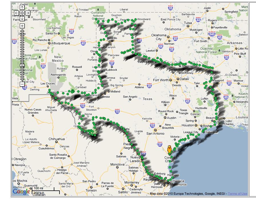 Over the next year, he would trace the state’s borderline from Corpus, up along the Gulf Coast and through East Texas, along the Red River, into the Panhandle, and back through West Texas and the Rio Grande Valley.
