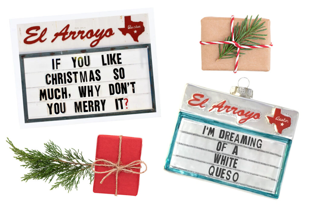 Give your local gifts with local greetings. The beloved Austin Tex-Mex joint El Arroyo has been dishing out enchiladas at the corner of West 5th and Campbell since 1975. Out front, their iconic ever- changing and whimsical sign has been helping to keep Austin weird even as the surrounding neighborhood has changed.