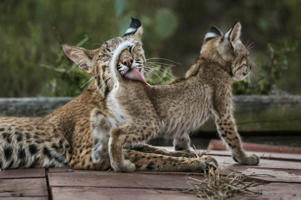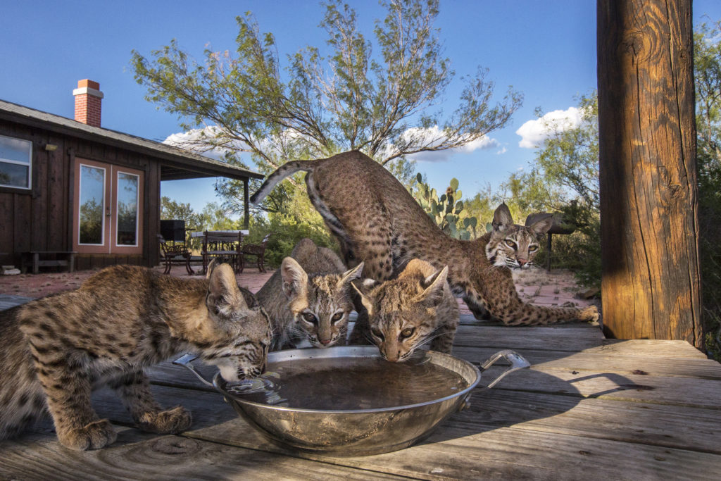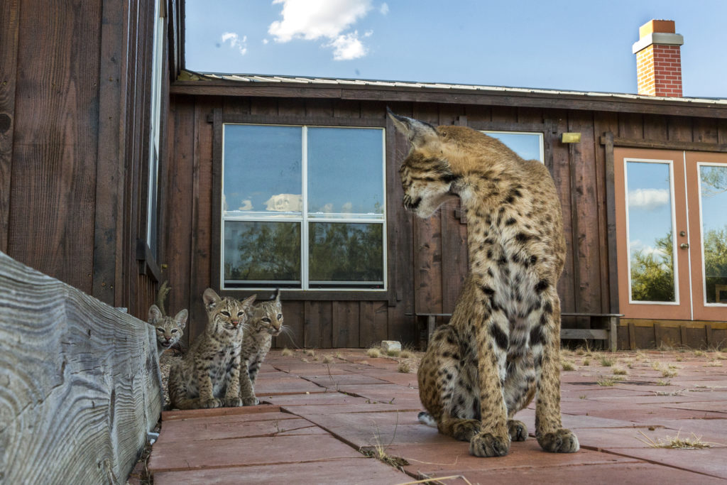 I had known there were bobcats denning under the house where I was living. I came to the South Texas ranch every summer to lead youth photography workshops. We’d leave a water bowl in the shade under the deck and wouldn’t think much else of it. That was until the summer of 2017, when a beautiful, young female bobcat stopped to drink water from the pond across from where I sat one evening at sunset. She let me crawl closer and closer to her with my camera. The connection I felt was instant. After that, I started seeing bobcats everywhere. Finally, back at the house I now call Bobcat Manor, I finally met the mother bobcat who lived beneath me — the cat I would come to know as Momcat. I spent every day getting closer to her and the three kittens she raised that summer. Over time, they allowed me not only to observe their lives but to enter into their world.